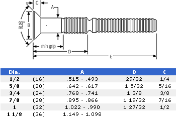 C50L® Powerbolt Pins - Steel, Zinc Plated, 90° Flush Head